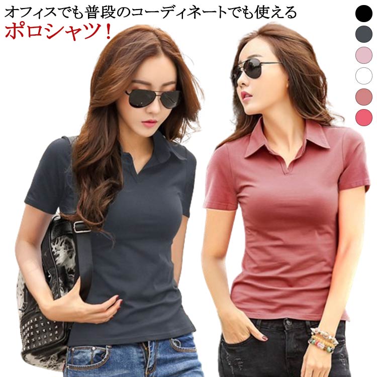 無地 ポロシャツ 女性用 スリム レディース 春夏 お洒落 ビジネス 20代 30代 40代 無地レディースファッション トップス ポロシャツ