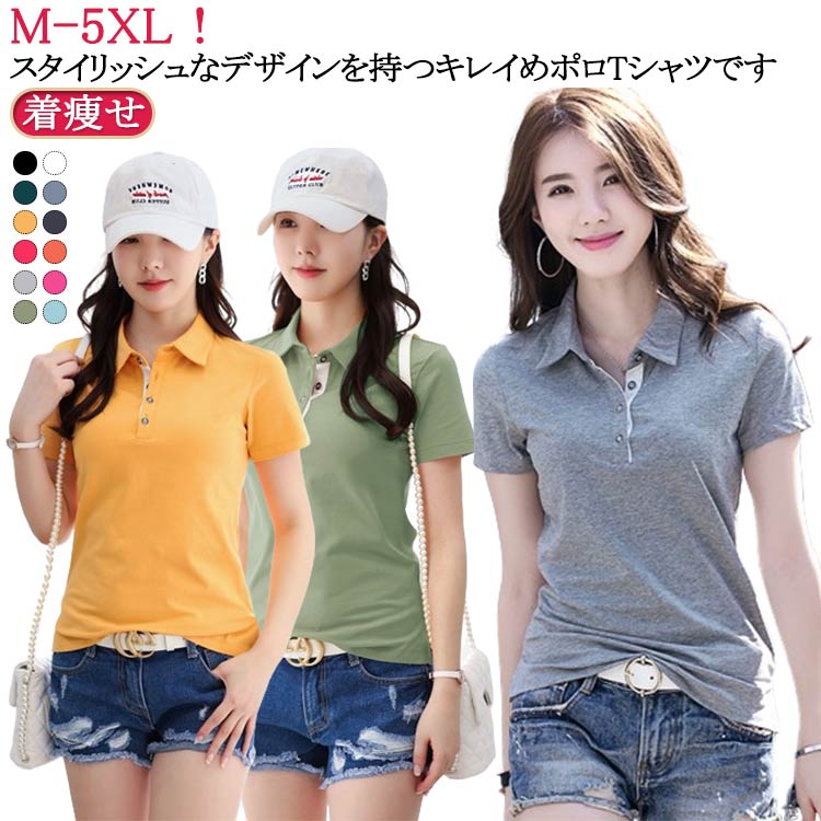 通気性 女性 レディース 半袖 春夏 着やせ 綿 ポロシャツ 柔らかい tシャツレディースファッション トップス ポロシャツ