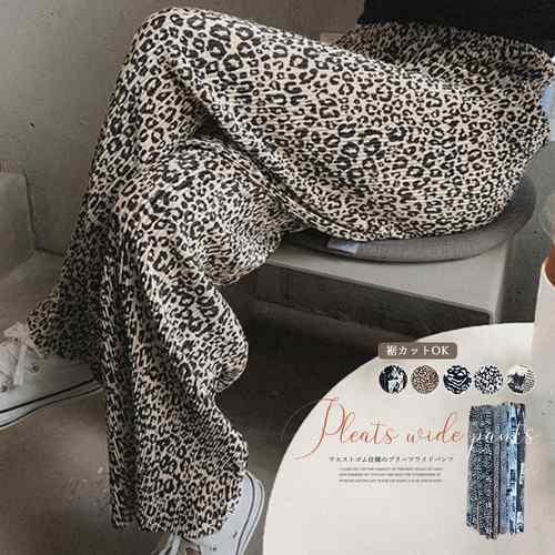 ハイウエスト ストレートパンツ カジュアル ロングパンツ リラックス ウエストゴム 着やせ ヒョウ柄パンツ ボトムス 楽ちん アニマル柄パンツ ゼブラ柄 パンツ
