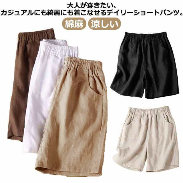 ~4 ナチュラル 体型カバー 薄手 涼しい 綿麻ショートパンツレディースファッション ボトムス パンツ