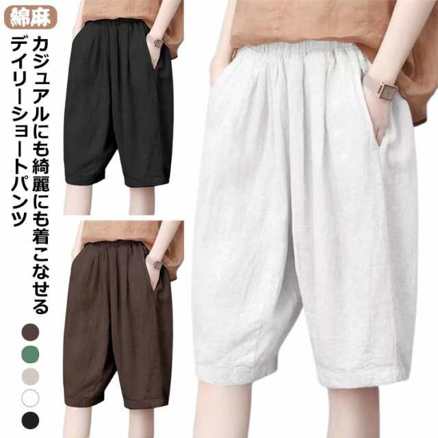 リネン パンツ 5分丈 レディース 綿麻パンツ サマー パンツ ハーフパンツ 春夏 カジュアル 無地 ポケット 涼しい 快適