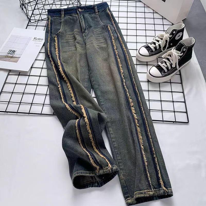 デニムパンツ レディース ダメージ加工 春夏秋 ゆったり カジュアル パンツ 通勤 ワイドパンツレディースファッション ボトムス パンツ