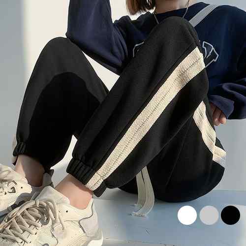 レディースボトムス 韓国風 サイドライン ハイウエストパンツ ウエストゴム 部屋着 運動着 カジュアル ダンス衣装 ヨガスポーツウェア イージーパンツ新作 体型カバー ズボン