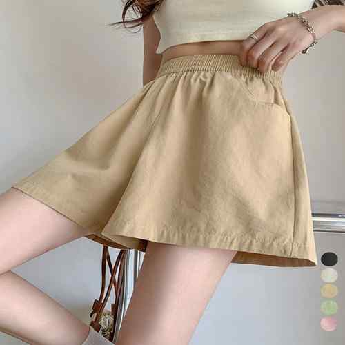ウエストゴム 美脚キュロットパンツ ポケット付き ゆったり ハイウエスト ショーパン 薄手部屋着パンツ 無地ルームウェア 着やせハーフパンツ カジュアル半ズボン 韓国ファッション夏