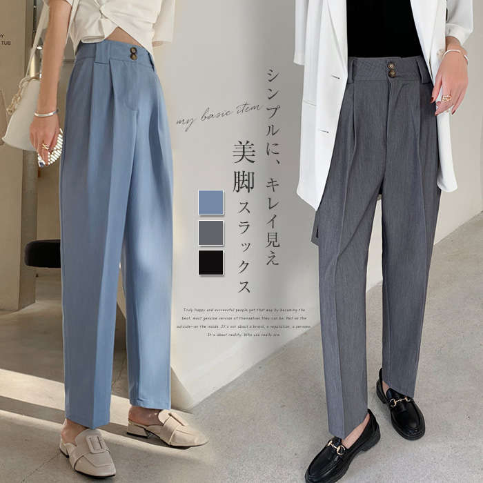 端正なスラックスパンツ 長ズボン スーツパンツ ハイウエスト ママ ディリー 二次会 入園式 参観日