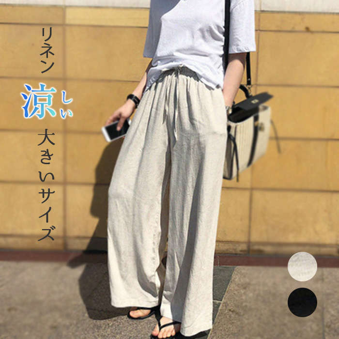 リラックスパンツ レディース ワイドパンツ 無地 麻 リネン 裏地 大きいサイズ 夏 ゆったり ポケット付き シンプル ルームウェア