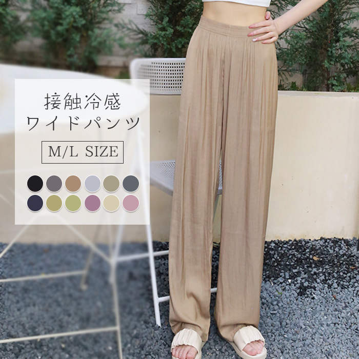 パンツ レディース 接触冷感 夏 涼しい きれいめ ズボン ワイドパンツ 冷感パンツ ガウチョパンツ 薄手 涼感 COOL 楽ちん 美脚 ボトムス シンプル ゆったり リラックス ウエストゴム カジュ