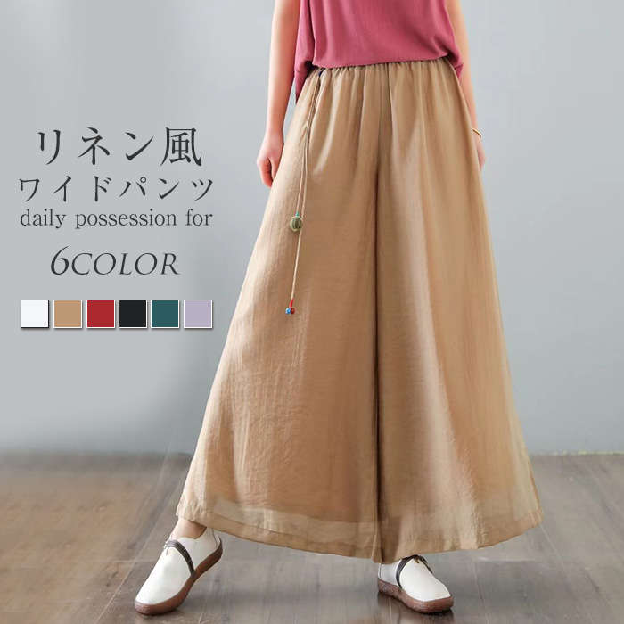 即手に入る サマー ワイドパンツ Linen pants ♪レディースファッション ボトムス パンツ