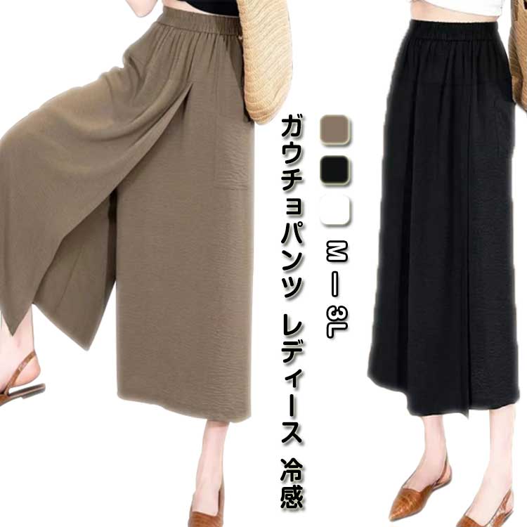 ガウチョパンツ 冷感アイスシルクパンツ スカートパンツ ハイウエスト 夏 ひんやりレディースファッション ボトムス パンツ
