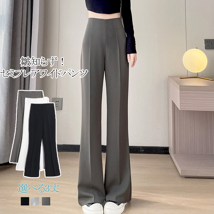 シワに成りにくいフレアパンツ パンツ レディース ビジネスパンツ ゆったり マキシ丈 皺知らず レディースパンツ ゆるパンツ 抜け感 ビジネス オフィス ブラック ホワイト グレー