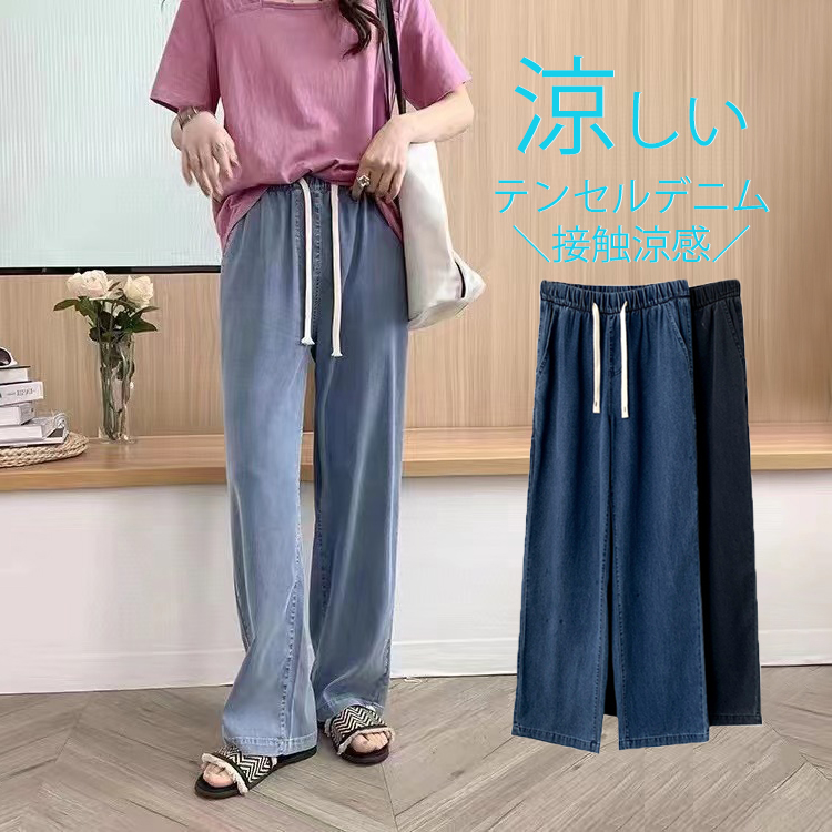 夏にうれしい接触冷感素材のデニムパンツ 暑苦しく感じやすいデニムも、冷感素材で仕立てることで着心地良く仕上げましたチノパンツ 無地 薄手 涼しい ロング丈 ライトデニム