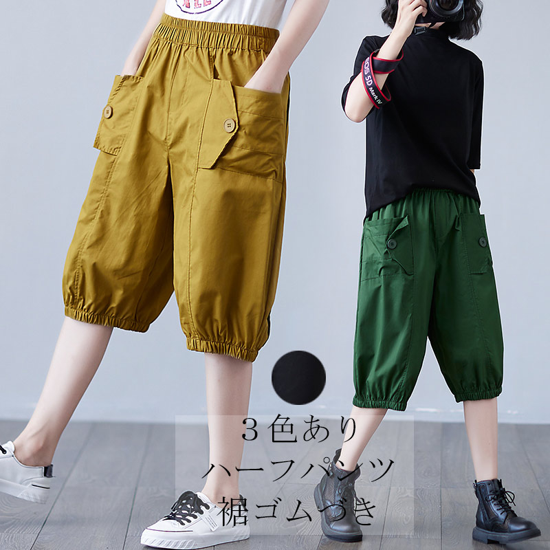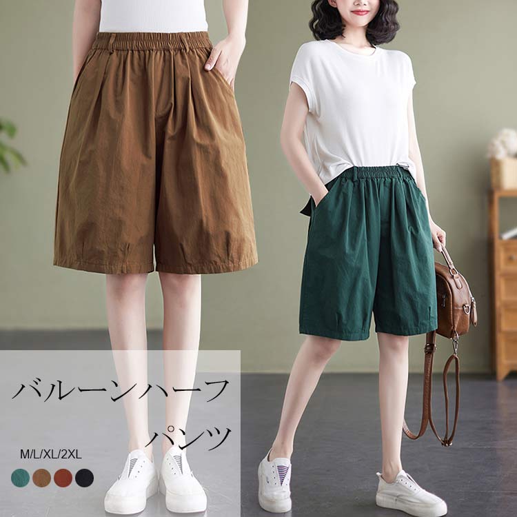 ハーフパンツ 5分丈 サマー パンツ ショートパンツ レディース 春 夏 カジュアル 無地 ポケットづき 涼しい 快適 M L XL 2XL