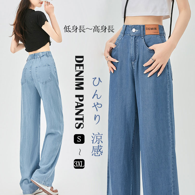 デニム ワイドパンツ レディース デニムパンツ 涼感 カット 冷感素材 接触冷感 冷感パンツ ワイド パンツ ゆるパンツ ボトムス ひんやり 薄手 涼しいワイドパンツ