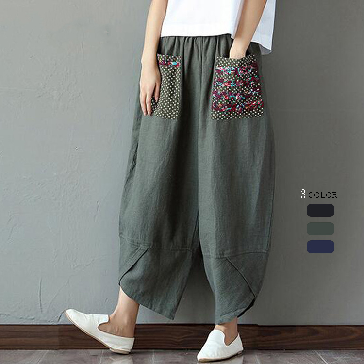 夏用薄手バルーンパンツ 柄ポケットカジュアル風 コットン 部屋着 リラックス ナチュラル 可愛い きれいめ 母の日 ママパンツ