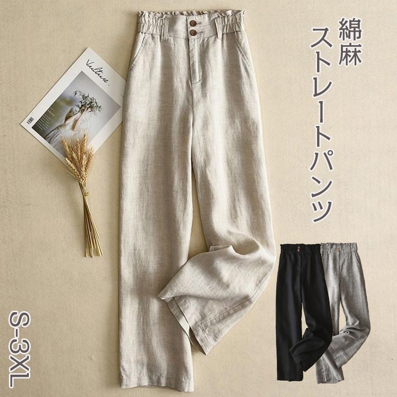 お腹が苦しくない楽チンチノパン 涼しい ひんやり 着心地がいい 高身長 低身長 コットン リネン ホワイト イエロー ブラック ブルー パープル 麻色 2