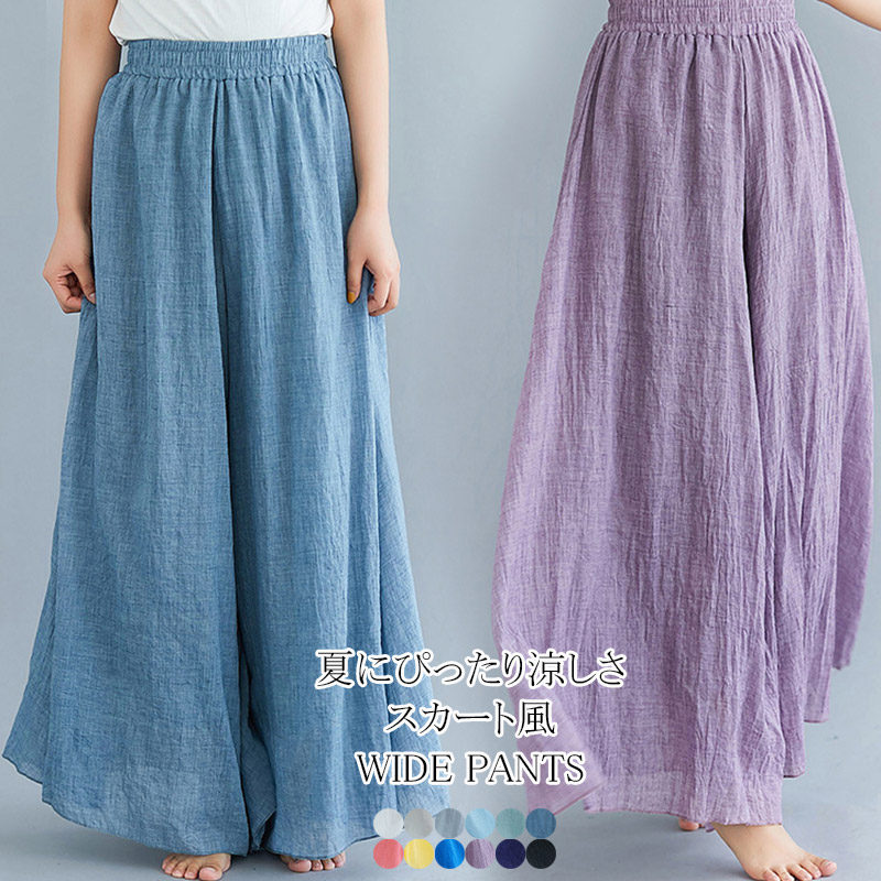 全12色 動くたびに表情変わり 一見スカートの様に見えるワイドパンツ 涼しい 夏 パンツ レディース 薄手 体型カバー おしゃれ カジュアル ゆったり ブラック 黒 ホワイト 白 M L