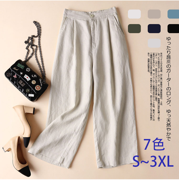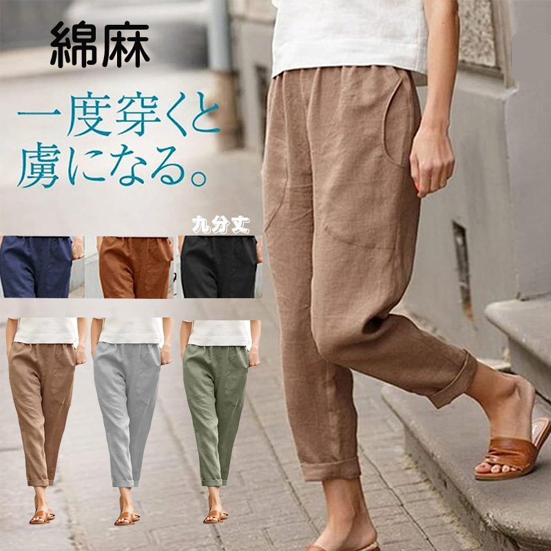 綿麻パンツ リネン100 9分丈 コットン ナチュラルな風合い ゆったりレディースファッション ボトムス パンツ