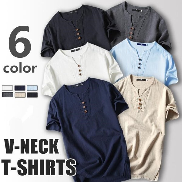 Tシャツ メンズ 半袖 カットソー無地 Vネック 涼しい リネン 麻 綿麻 夏 夏服レディースファッション ボトムス パンツ