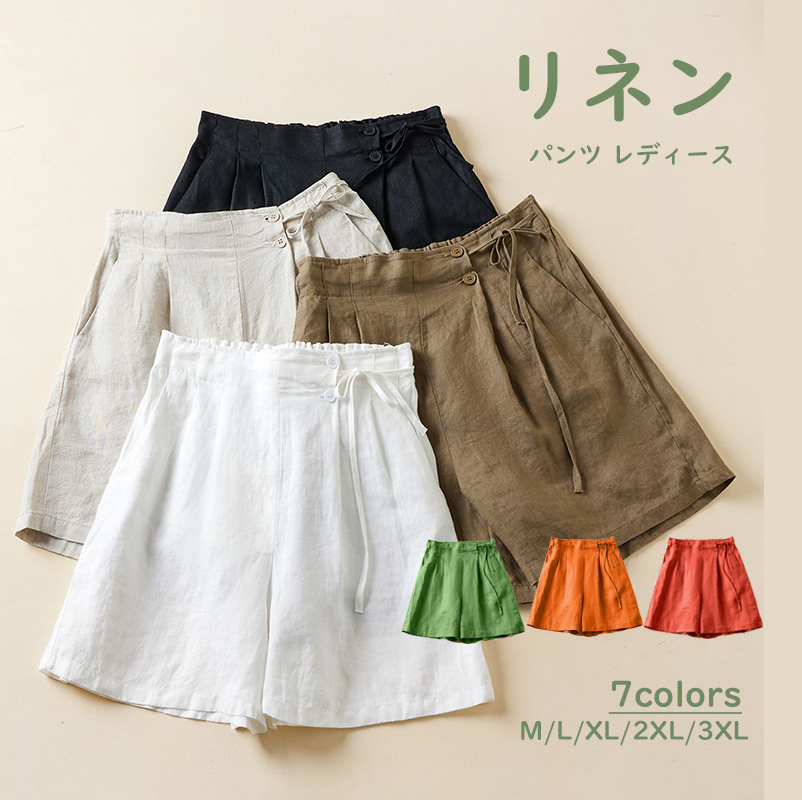 カジュアル 大人可愛い お出かけ 旅行 綿麻 ショートパンツ 短パン レディース 綿麻 夏 ハーフパンツ 無地 純色 部屋着 ウエストゴム 普段履き