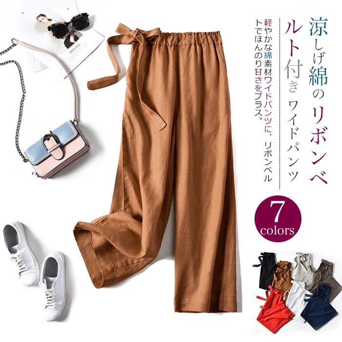 綿麻パンツ リネン混 9分丈 コットン ナチュラルな風合い ゆったりレディースファッション ボトムス パンツ