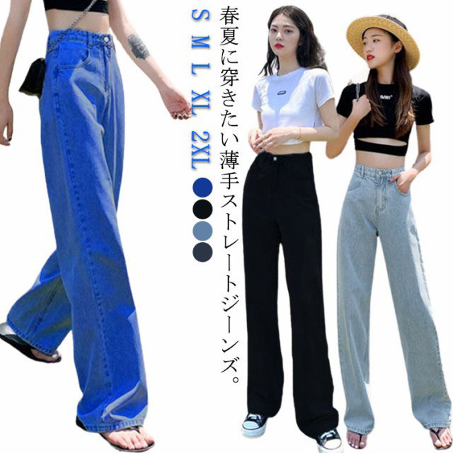 ワイドパンツ ジーンズ ワイドデニム 無地 ポケット 春服 春夏 ボトムス ゆったり ロング デニム