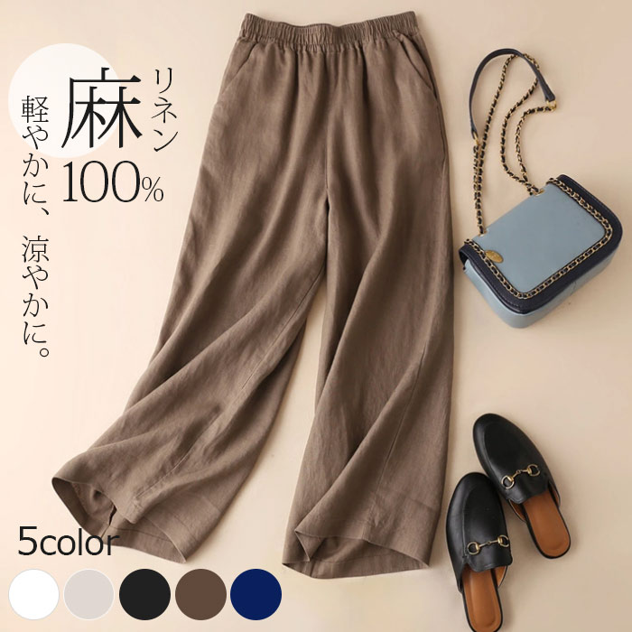 おしゃれな麻 パンツ春夏9文丈 キュロットスカートマキシ丈フレアパンツ キレイめ ワイドパンツ 涼しい カジュアル ストレート リラックス