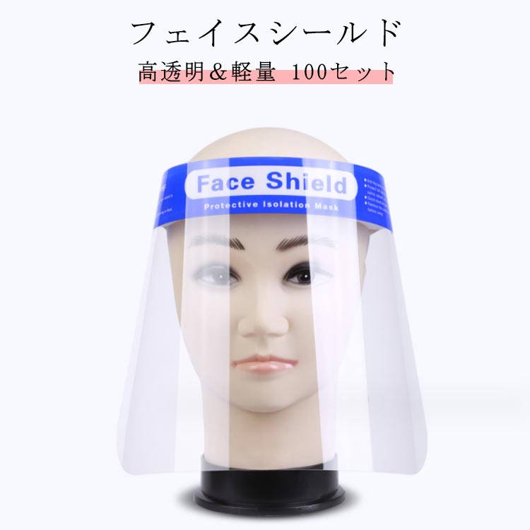 フェイスシールド フェイスガード 大人用 簡易式 接客業 水洗い 介護施設 医療 透明シールド 男女兼用 目立たない 100個 コンビニ 防塵 目立たない 飛沫防止 フェイスカバー