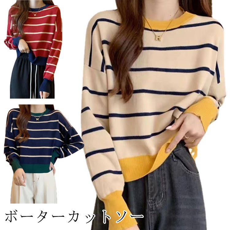 Tシャツ レディース レディース レッド トップス 大きいサイズ ベージュ ボーダー S M L XL 春 ネイビー
