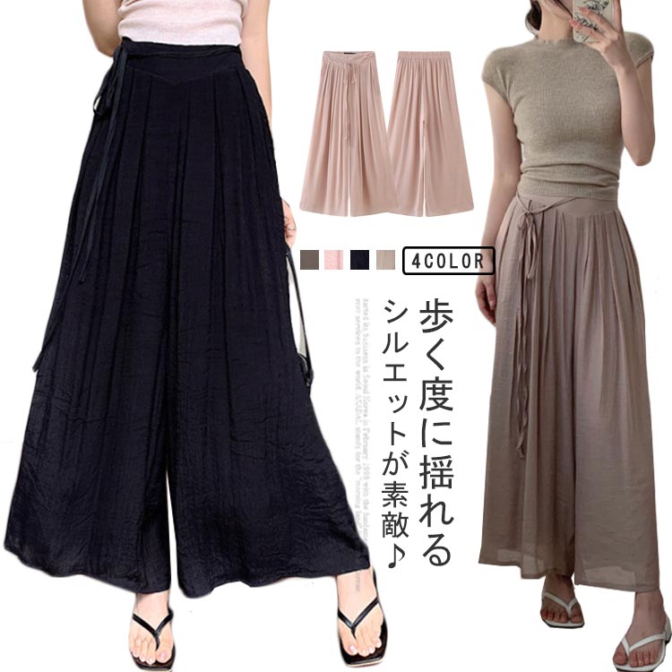 バギーパンツ パンツドレス ワイドパンツ フレアパンツ リネン 大きいサイズ 薄手涼しい スカーチョ ゆったり 可愛い ふんわり タックパンツ 通勤 ワイドパンツ お出掛け