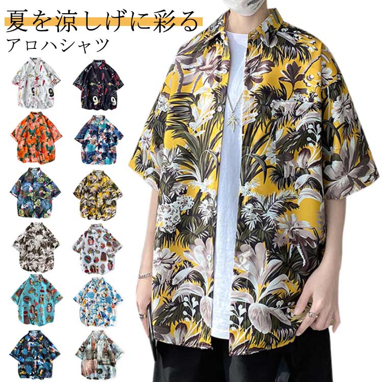 ハワイ シャツ アロハシャツ 開襟シャツ 半袖シャツ 花柄シャツ メンズ シャツ 総柄シャツ メンズシャツ 花柄シャツ ハワイ ハワイアン 夏服 夏 トップス アロハ リゾート婚 リゾートウエディング