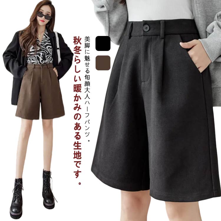美脚に魅せる旬顔大人ハーフパンツ ウールタッチハーフパンツ ハーフパンツレディースファッション ボトムス パンツ