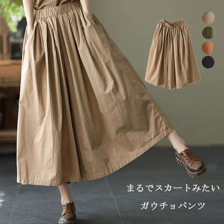 キュロット ガウチョパンツ リラックス カジュアル ウエストゴム ゆったりレディースファッション ボトムス キュロット
