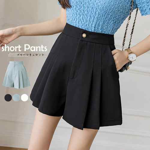 無地 ショートパンツ 夏 ミニ丈パンツ Aライン ハイウエスト きれいめ 着やせ 美脚 ボトムス タック 短パンブラック サマーパンツ大人気 薄手 涼しい 快適 ワイドパンツ 短め