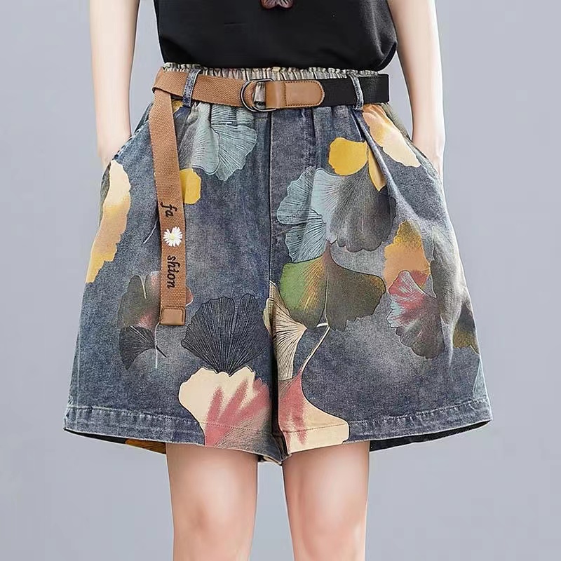 ショートパンツ デニムパンツ レディース 夏 総柄 五分丈 m l xl 2xlレディースファッション ボトムス キュロット