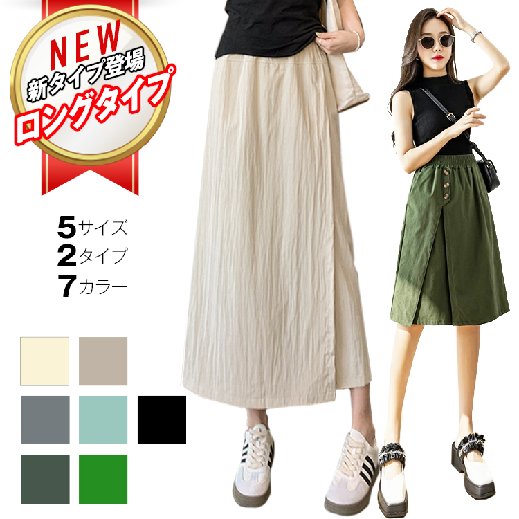 5カラー 5サイズ S M L XL 2XL キュロット ハーフパンツ ボトムス 半ズボン フェイクスカート スカンツ ハイウエスト ブラック ベージュ ブラウン グリーン カーキ カジュアル