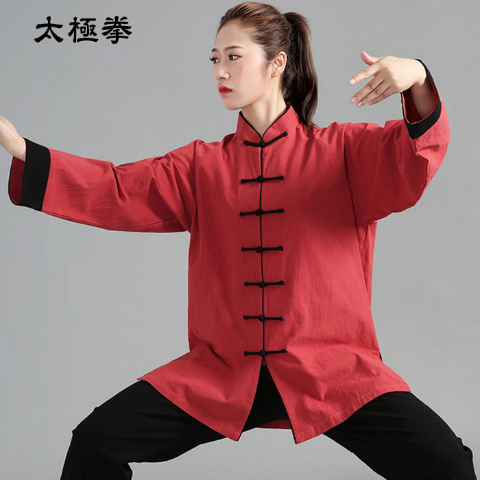 太極拳 服 太極拳ウェア 秋 冬 春 リネン コトン 麻混 セットアップ 上下 2点セット 太極拳 トップス パンツ 2点セット 2 3 4