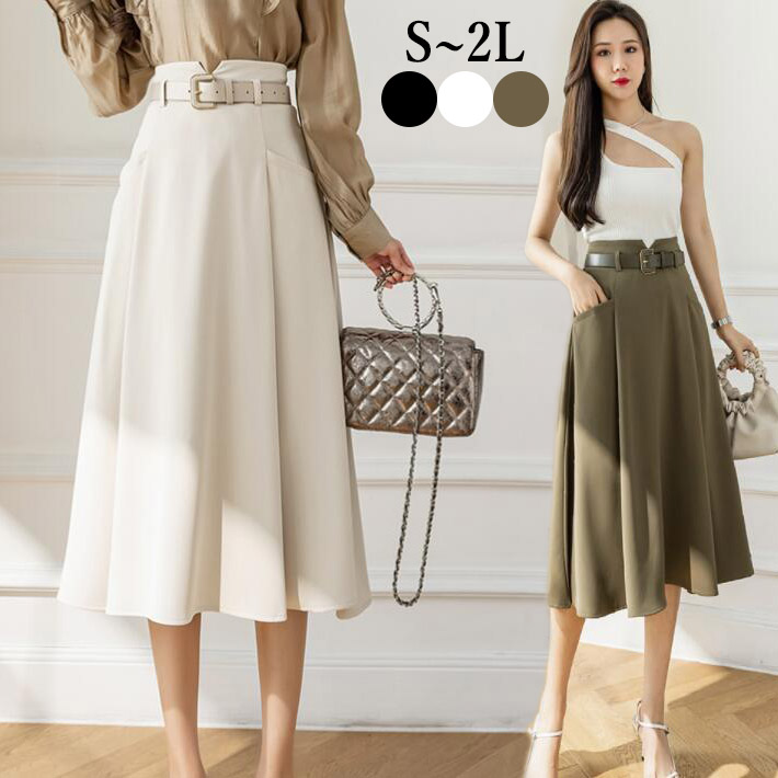 スカート Aラインハイウエストひざ丈 ミディアム 膝丈 ロング丈 美脚オフィスOL 二次会デートオフィスフォマール カジュアルボトムス S M L 2L3L