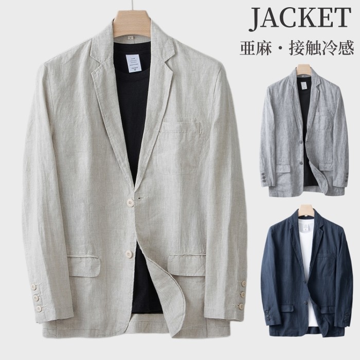 麻 ジャケット サマージャケット テーラード ブレザー テレワーク 男性用 薄地 紳士品 春夏秋服 3色 灰色