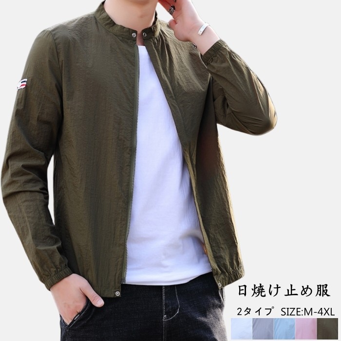 接触冷感 UVカット カーディガン スタンドカラー ライトアウター 紫外線カット カジュアル ジャケット 夏 2タイプ 白色 藍色 灰色 緑色
