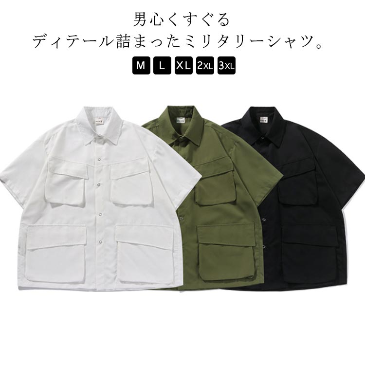 ミリタリーシャツ 多ポケット カジュアルシャツ ワークシャツ 半袖シャツ ゆるシャツ 半袖 羽織り シャツジャケット ライトアウター