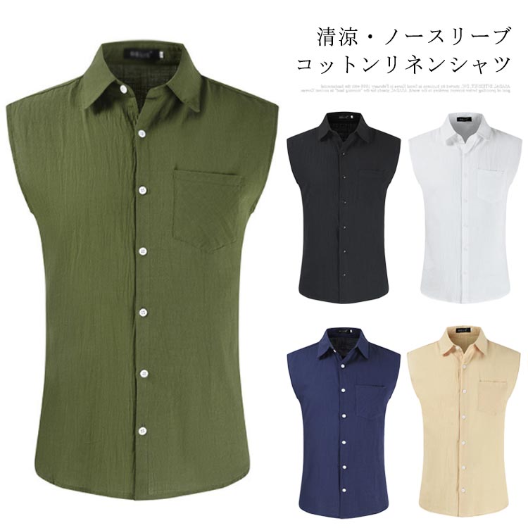 -3 亜麻 ベスト ノースリーブシャツ 男性 夏服 涼しいシャツメンズファッション トップス カジュアルシャツ