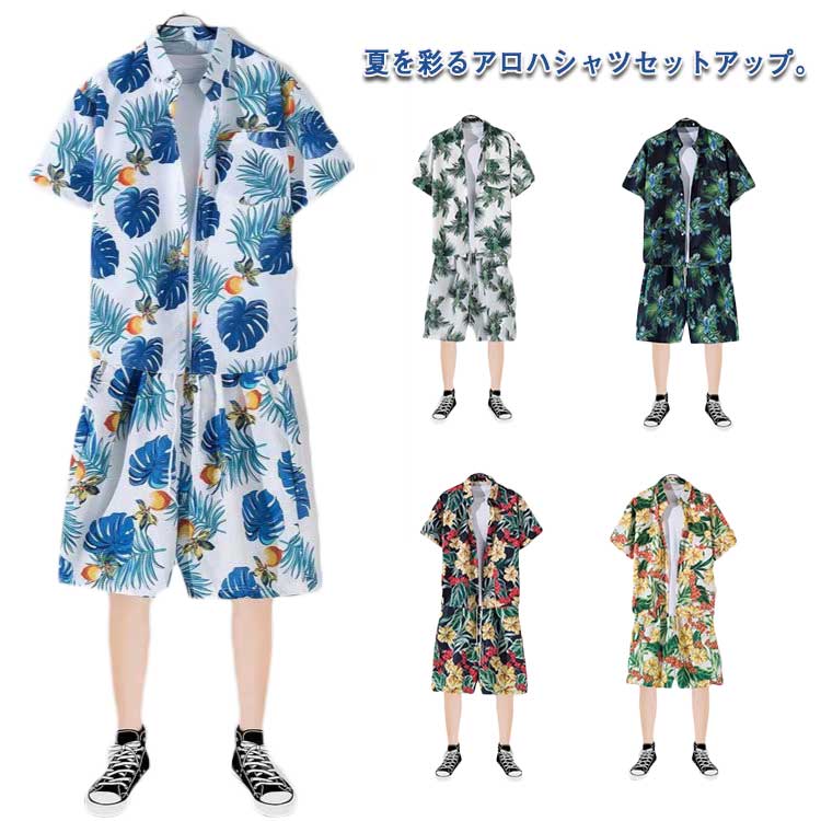 アロハシャツ ハーフパンツ セットアップ 花柄 ボタニカル柄 オフの日 カジュアル リラックスウェア 部屋着