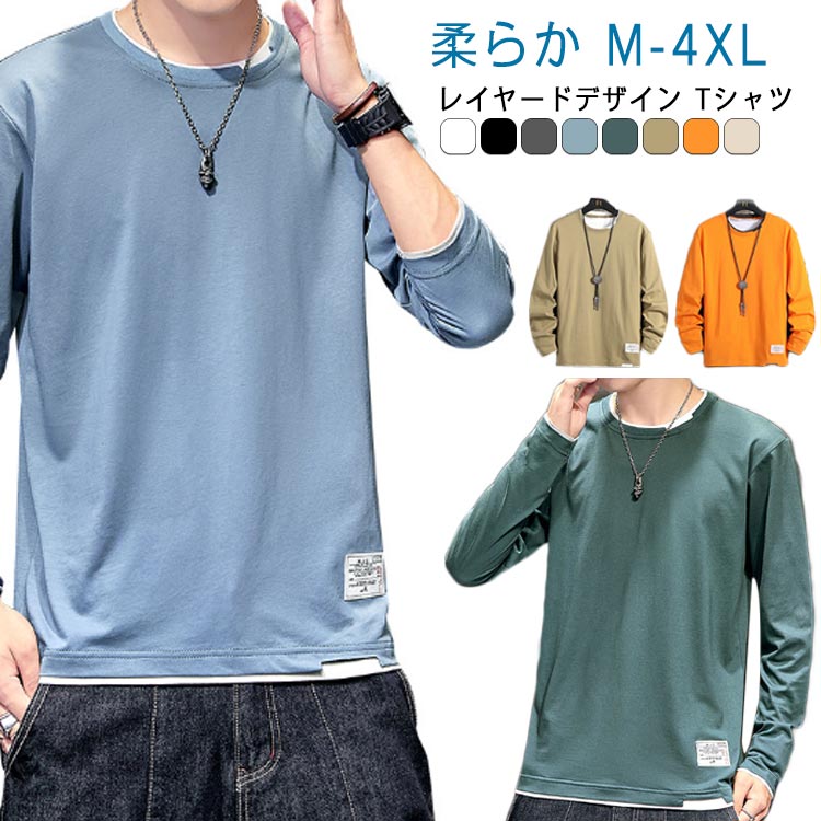 トレーナー レイヤード風Tシャツ 重ね着風 メンズ トップス 作業着 重ね着 イベントメンズファッション トップス パーカー