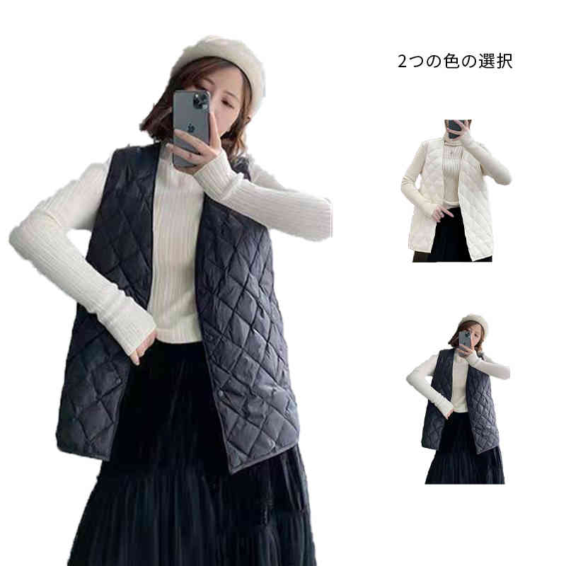 薄型 ロングベスト ロングベスト 上着 ライトアウター アウター 羽織 ロング丈 レディース Vネック 羽織り 中綿 重ね着 大きいサイズ ゆったり