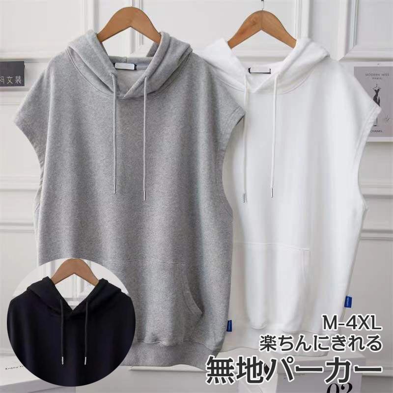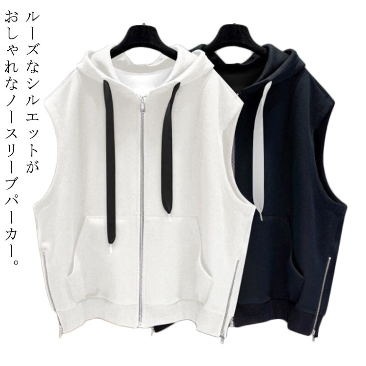 パーカーベスト ノースリーブ パーカー Tシャツ カーディガン オーバーサイズ トップス スウェット ユニセックス メンズ