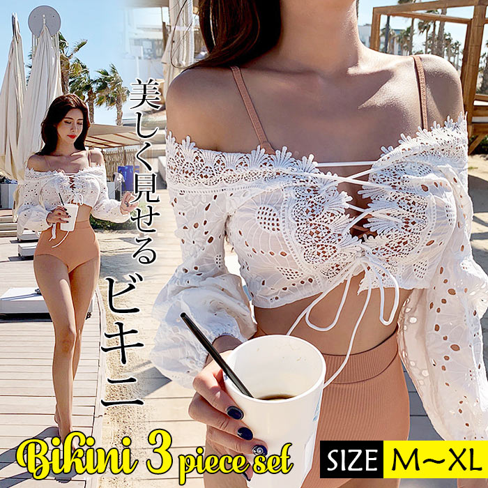 水着 レディース 3点セット 体型カバー 穴付き セクシー ビキニ レディース かわいい 体型カバー ビスチェ風 ハイウエスト ビキニ オシャレ ワイヤ付き パットなし 温泉 セクシー ビキニ ショー