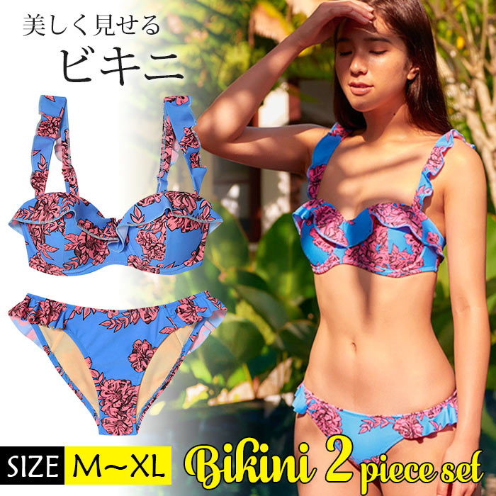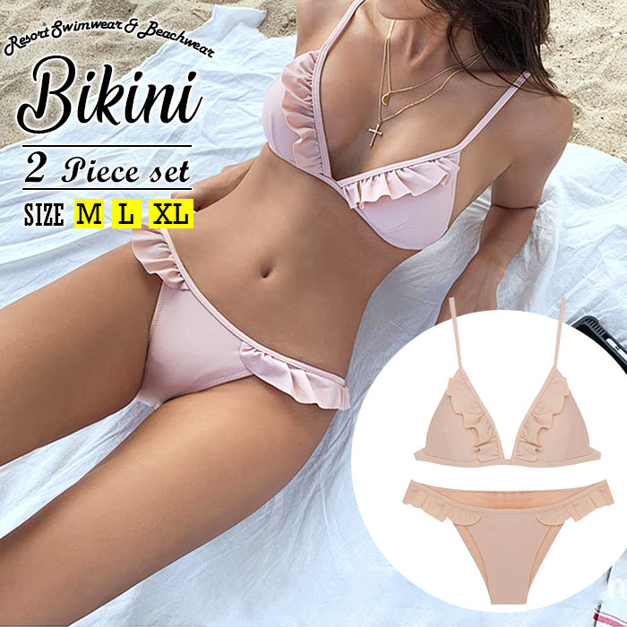 水着 レディース 水着 ビキニ 水着 バンドゥ ビキニ 水着 セット 無地 水着フリル セクシー フレアトップ プチプラ 温泉 水泳 ビーチ かわいい 綺麗 オシャレ M L XL 無地 サラサラ ツ