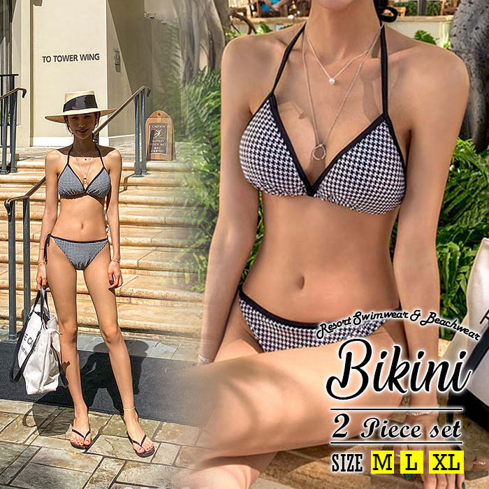 水着 レディース ビキニ 上下 セット オシャレ チェック柄 セクシー 温泉 ビーチ 水着 可愛いパッド付き ワイヤーなし 40代 30代 20代 ミセス 510代 20代 30代 ネル生地 可愛い