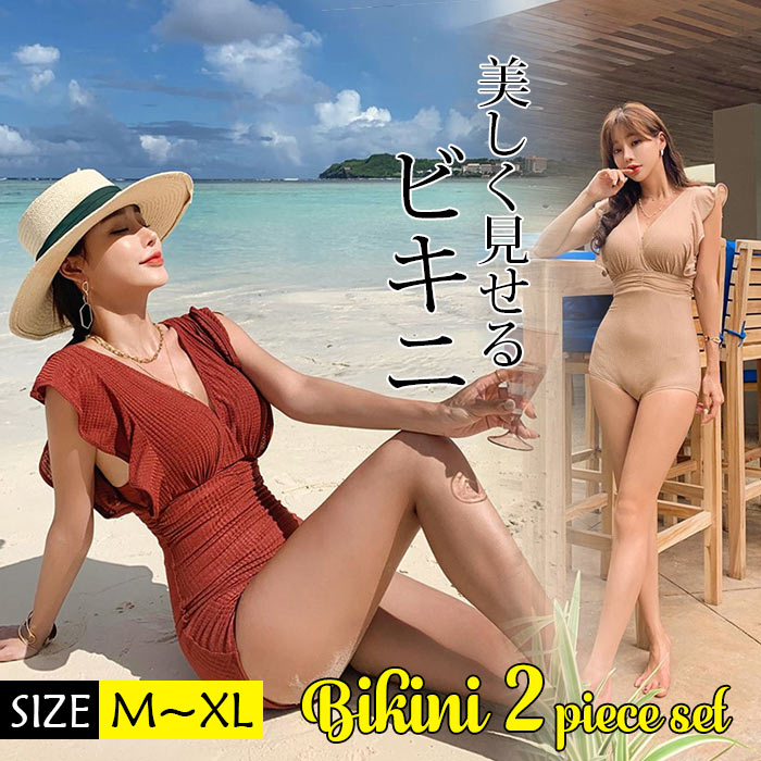 水着 体型カバー レディース オシャレ ママ水着 ビキニ セクシー水着 セクシー ビーチ 海 旅行 胸元 セクシー シンプル 2点セットかわいい シンプル 水泳 旅行用 無地 パッドつき ワイヤーなし