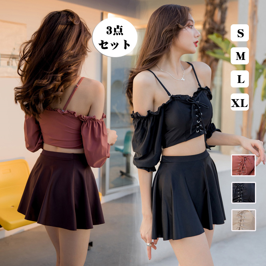 可愛い 韓国 水着 レディース タンキニ セパレート 3点セット スカート かわいい 露出控えめ 安全パンツ